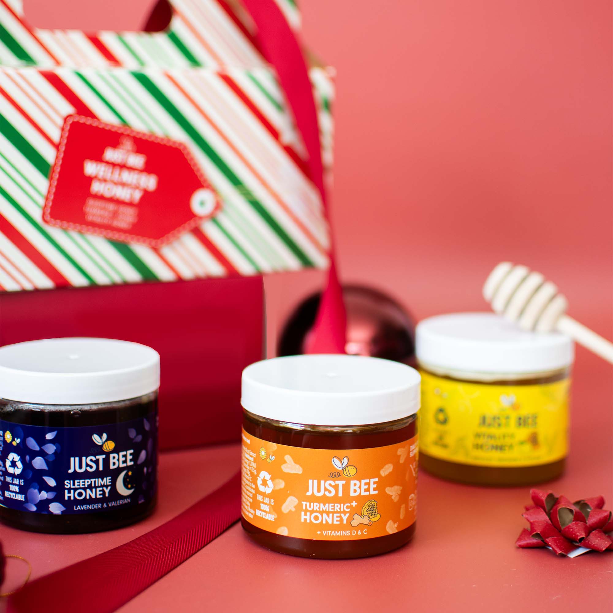 Because wellness should taste as good as it feels! Our Wellness Honey Gift Box combines natural goodness with daily self-care — each jar enriched with vitamins and botanical extracts to support energy, balance, and relaxation. Beautifully boxed and ready to gift, it’s a delicious way to show someone (or yourself) a little love.