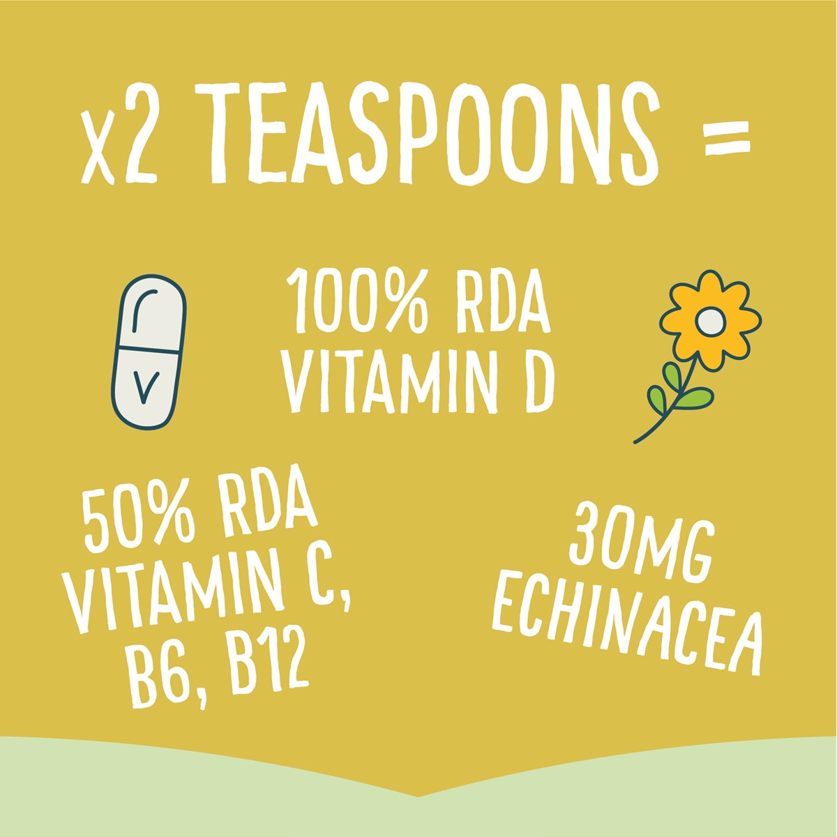 Pure honey, Natural Vanilla Bean Flavour, Echinacea, Vitamin D3, Vitamin C, Vitamin B6, Vitamin B12